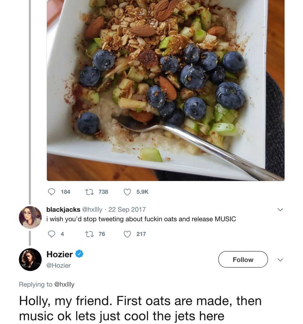 Now, the post was made April 1st (April Fool's Day), so this could all be a very horribly cruel joke. But I'm choosing to be optimistic, especially since Hozier has been telling fans an album was in the works since last year. Hopefully this is for real, and we'll finally be getting that long-awaited second album.