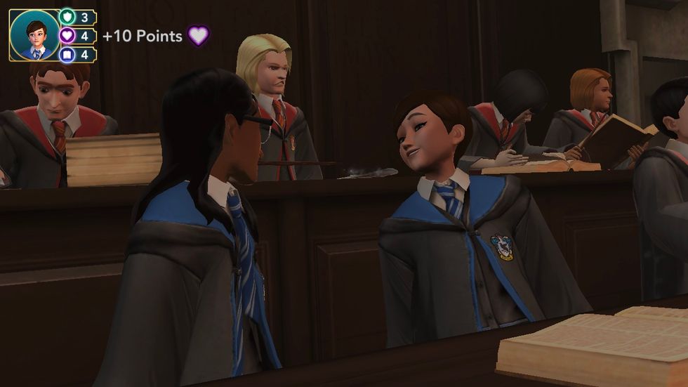 As you know, Hogwarts has a point system. That has also been included in the game with how your decisions and participance in your studies shape the score toward who will acquire the House Cup (Hint: attend your classes and go for the longer hours).