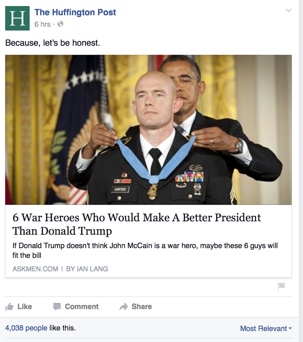 No matter what one personally thinks about Trump’s comments and campaign tactics, a large segment of the American population is voicing support for him, and that’s news whether The Huffington Post likes it or not. To say it’s not is an attempt to put personal biases into coverage, an issue for an organization that makes no indication that its news section is anything but fair coverage.