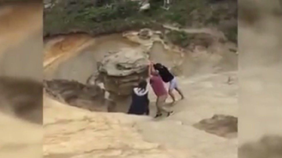 Here, a couple can be seen posing on top of the Duckbill. Although they didn't crumble the formation in the moment, this little act added to its final demise by weakening the sediment.