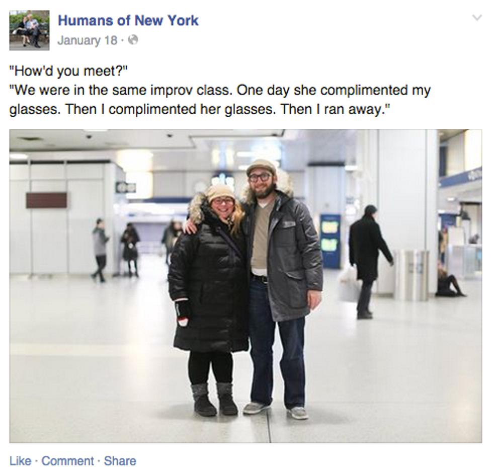 The hundreds of thousands of posts vary from a child’s excitement, to an adult’s job loss, to a person’s homelessness. I believe a reason as to why this blog has grabbed so much popularity is because the people in the posts are real, off the street people. They are just like you and me, fighting their own battles, dealing with their own issues whether they’re big or small. The people in HONY are authentic and easy to relate to.