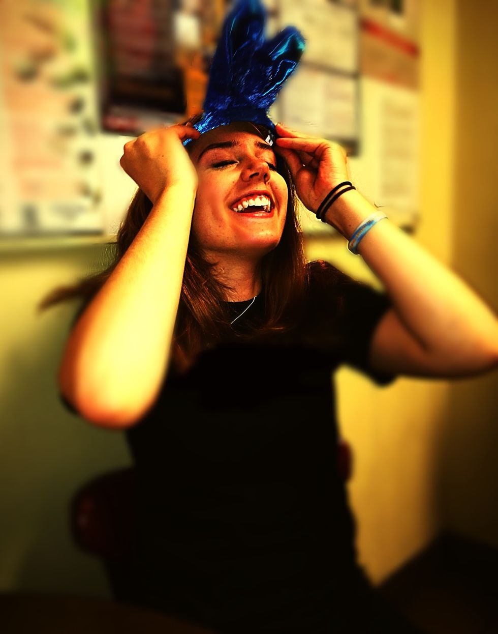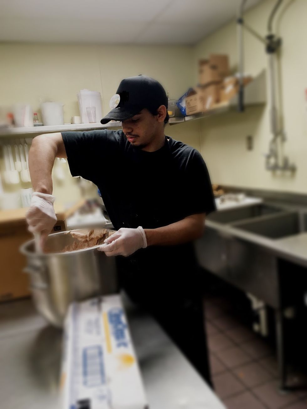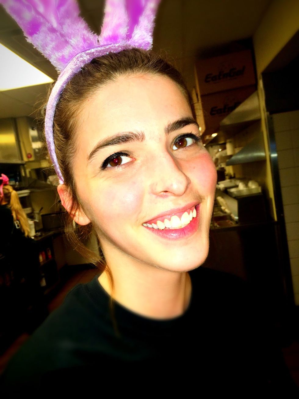 “ It’s really fun, and the people here are really nice. I don’t really have any stories… I haven’t been working here for that long except... one time I threw an egg at my coworker in the cooler. Well, actually two times. I work here so that I can help pay for my high school tuition and have a little extra money to spend. Wait, I’m not ready, don’t take it yet! Let me put my ears on!”