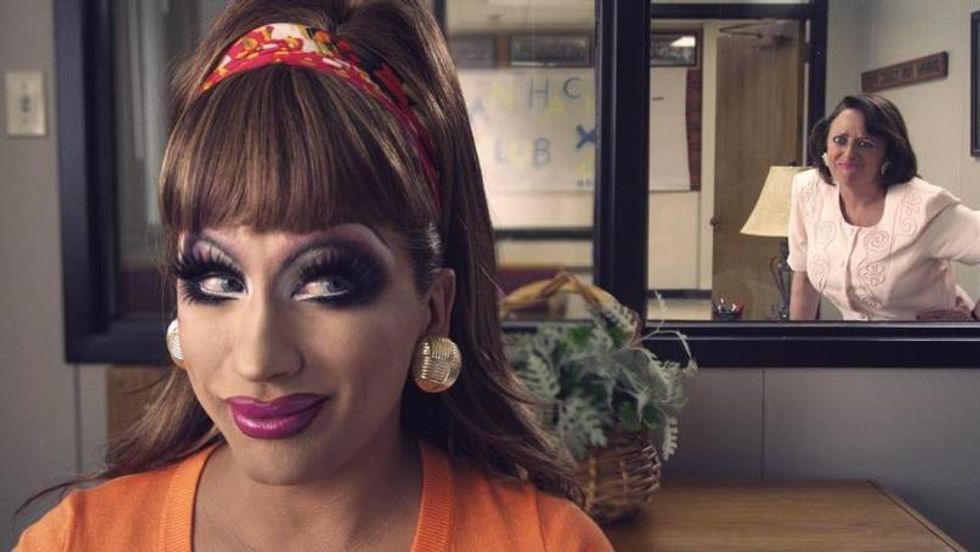 Bobby is my favorite character in Hurricane Bianca thus far. The quirky, obviously gay student reads his chemistry book, does his homework, and loves Bianca's shade she throws at her students and fellow coworkers. With him being gay in the south, he is bullied on a daily basis. This happens a lot more than people are aware of. Students are made fun of, hit, slapped, kicked, and more often than not depressed and suicidal because of it. But throughout the movie, Bobby keeps a bubbly and happy appearance.