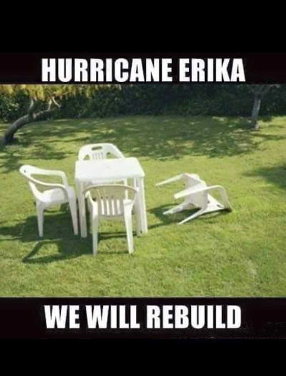 With its five mile an hour winds and a slight drizzle of rain as the sun is still shining, Hurricane Erika has officially destroyed almost the entire state of Florida. After being predicted to be a Category 1 hurricane by the time it hit, Erika dissipated into a ferocious “trough of low pressure” according to the National Hurricane Center. Governor Rick Scott put Florida under a state of emergency after Erika’s unpredictability caused billions of dollars in damage. The National Guard is coming in hot evacuating what is left of our beloved state. Governor Scott says, “we’re still anticipating quite a bit of rain” and he is beyond accurate. As the sun in blazes on my face right now, I remembered I felt about three raindrops—or maybe it was a bird flying by. Anyway, the future of Florida is at risk, people. The extent of the damage I have already seen is tremendous. A couple lawn chairs on the back patio have been blown over by raging winds.