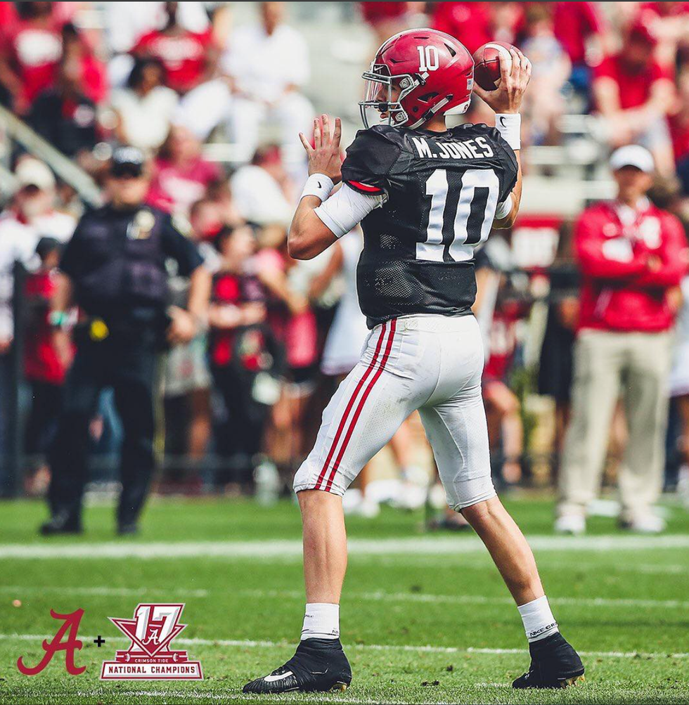With Tua Tagovailoa out due to a thumb injury, Jones took nearly every snap under center for the Crimson team.