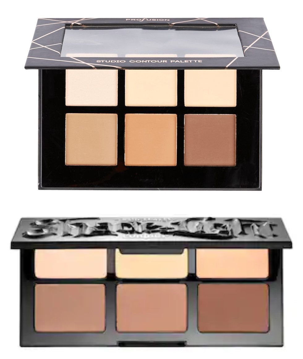 The two items above are contour palettes but have a great gap in the price. The top item is found on Hush Cosmetics it's a perfect duplicate for Kat Von D's contour palette (Shade and Light Face Contour). The profusion contour palette guarantees a contour just as good as the 'Shade and Light' Contour palette but is only $10! that's a great deal, while the high-end one is sold at $49, that's 59% cheaper.2. Bad Habits' After Hours Eye Shadow Palette