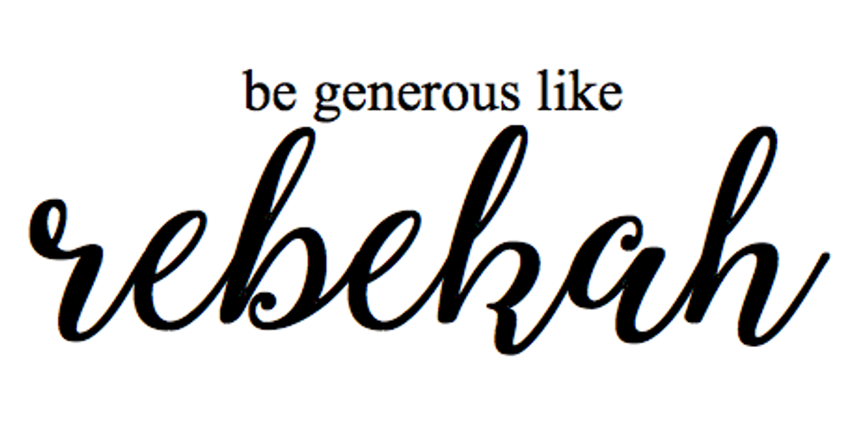 Rebekah's story takes place in the middle of Genesis. We meet Rebekah as she is carrying out a pitcher of water. We learn that Rebekah is also a beautiful young woman, "[she] was very beautiful to behold, a virgin; no man had known her," (Genesis 24:16). A servant ran to her, as she is carrying around this pitcher of water, and asks for a drink of water. She gives him a drink, and then says, "I will draw water for your camels also, until they have finished drinking," emptying the pitcher into their trough (Genesis 24:19). She goes back to the well and gets water for all of the man's camels.