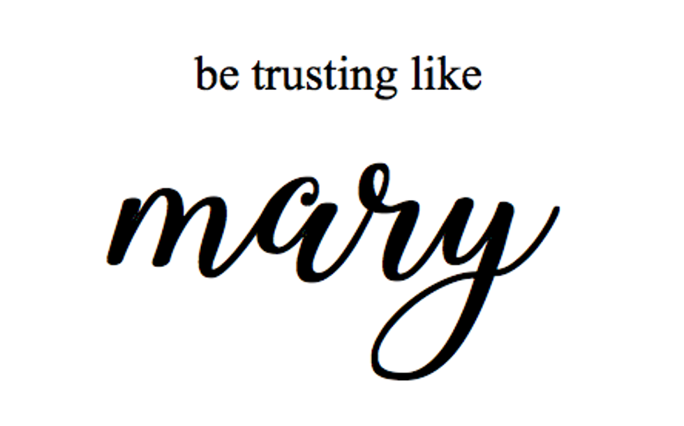 Mary trusts in the Lord, and His plan for her, instead of questioning it. No matter our circumstance, we are called to trust in the Lord, and all he has in store for us. Whether that's in a marriage, or waiting for one, God will never let us down. He has a perfect, and beautiful plan for us, we just have to trust in it. As Elizabeth tells Mary, blessed is she who believed. Believe in God. Believe in His plan for you. Believe in His love for you.