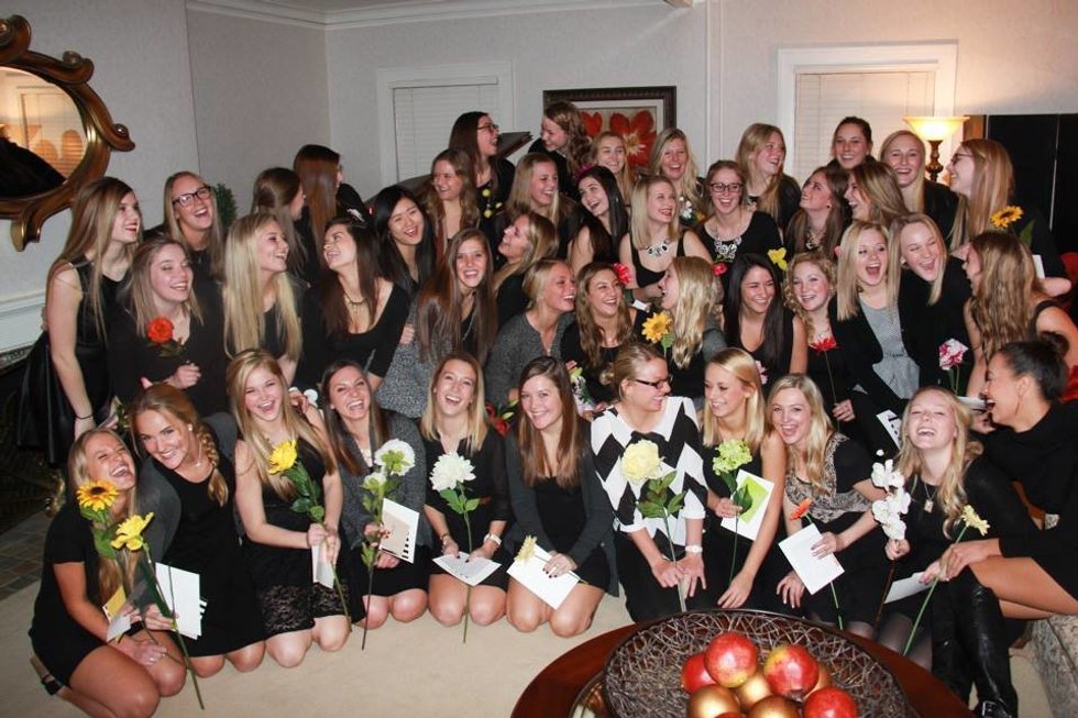 I can now appreciate the bond that us 44 new naïve sorority girls have made through the accepting and wonderful organization that makes us proud each and everyday to show off our letters. We have come so far since the day we all gathered on the Chi Omega lawn where we were hugging each other randomly, to now still hugging each other randomly but with knowing that we have each other’s backs as a friend and a sister.