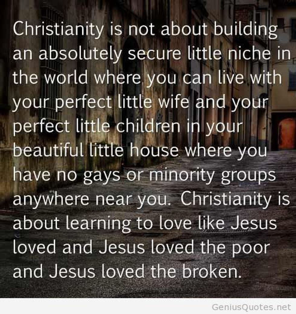 With the Supreme Court's recent ruling making it legal for same-sex marriage in all 50 states, there has been quite the uproar from the Christian community. There was even talk of a pastor's threat to set himself on fire if it went through. While #lovewins was trending on twitter, so was #christian. Society has decided that the LGBT community and the Christian community are to hate each other, but I’m here to take a different stand.