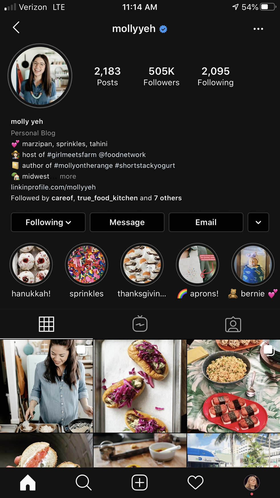 My love with Molly Yeh is somewhat frightening. I hardcore stalk her Instagram, Insta Story, and IGTV probably once a day to see the new content she has put out. Molly is a chef, of Chinese and Jewish descent, living on a sugar-beet farm in Grand Forks, North Dakota with her husband and newborn. Yes. That is correct. She went to school as a percussion major at Julliard, fell in love with her husband, Nick, and moved to work on his family farm in North Dakota, giving up music and New York City. She cooks in their small farmhouse kitchen and posts frequently on her food blog, my name is yeh. Her fame came so rapidly, she also has a show on the Food Network, Girl Meets Farm, where she whips up dishes filled to the brim with marzipan, tahini, and sprinkles. TO DIE FOR.
