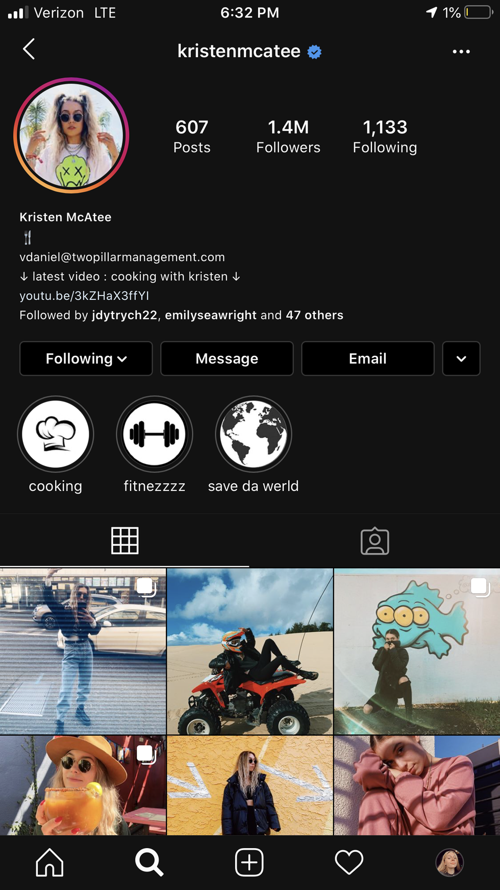 Now, a lot of people are aware of who David Dobrik and Vlog Squad is, but my favorite and lesser-known member is Kristen McAtee. This Bay Area native is known for her glasses and wild, head of hair. I fell in love with her page because of her humor and love for making a difference. She, along with her dog Link, is always down for an adventure through the back streets of Studio City, California. If you want a good laugh, check out her page, she is a legend and has an amazing west coast sense of style.
