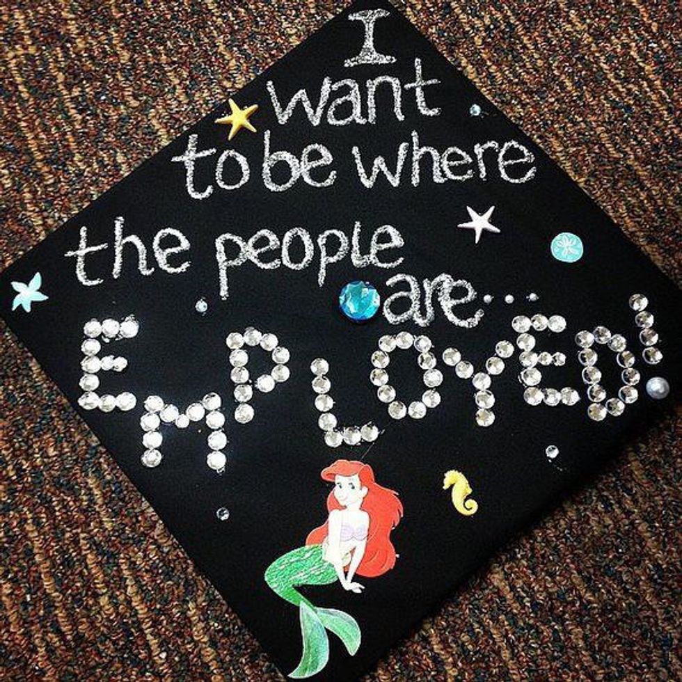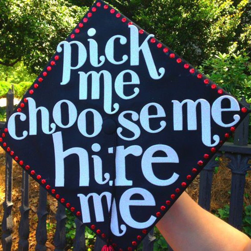 As much as I want to deny it, graduation is ever-looming, and quickly becoming less of a far-fetched dream and more of an exciting, yet frightening, reality. And, in order to prepare, I've been doing lots of...well...research into what I want to do with my one and only college graduation cap. Do I want to decorate it with a quote? A flag? A map? A lyric? Do I want to be clever, or do I want to be original? Witty or serious? Boring or exhilarating? I'm still figuring it out, but in the meantime, here are some of the best grad cap ideas that I've stumbled upon...