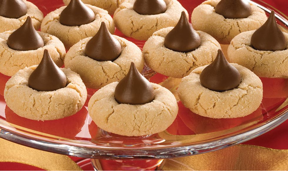 The chocolate kiss doesn't need to be placed precisely in the center of the cookie but it will somehow taste better if the diameter and radius of the peanut butter part of the cookie is measured before the kiss is dropped.