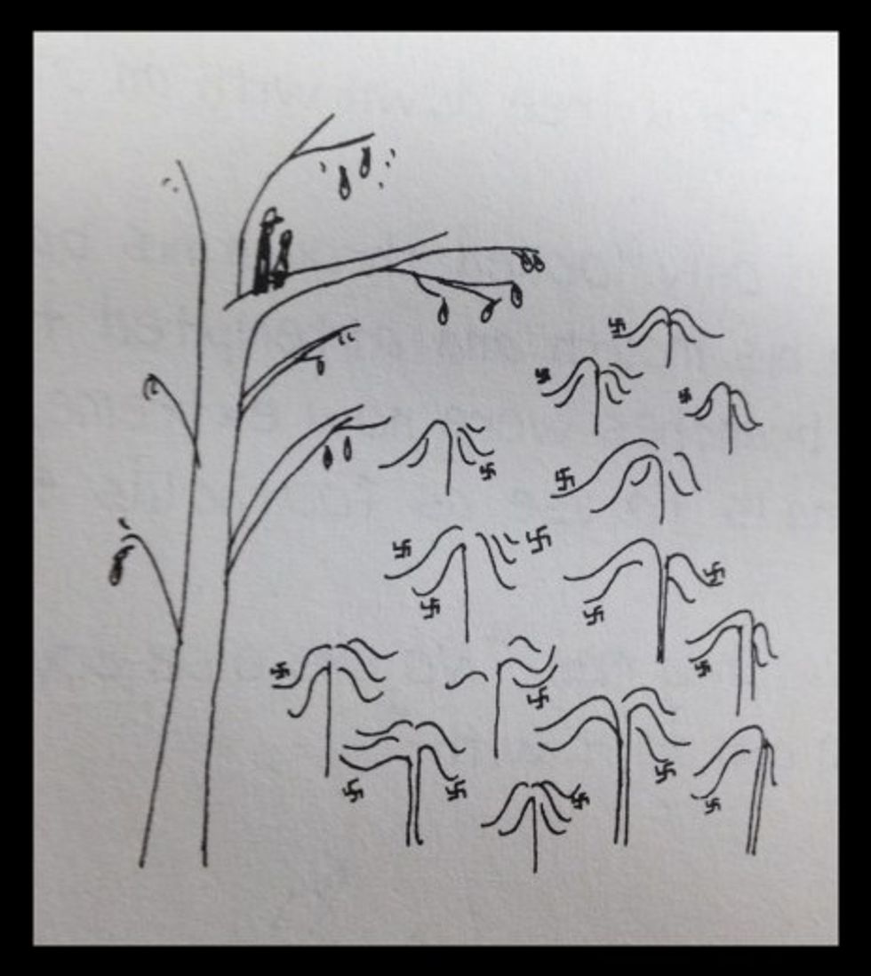 In The Book Thief, Markus Zusak wrote a story of a young word shaker, who grew a tree of beautiful words in a forest of hate.This tree of nice words grew faster and taller than any of the trees of hate and fear. No one could harm this tree while the little word shaker remained in it. Yet, after some time, the word shaker left her tree and it fell. As the tree fell, it took out a significant amount of hateful trees. As the story ends, we can see the word shaker and her friend walking through the fallen trees towards a better future.