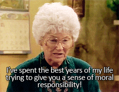My boss is similar to Dorothy's mom, Sophia. Yes, my boss does act similar to Dorothy more than Sophia; yet, since she is a graduate student and older than me and my friends and co-workers, it makes sense to have my boss be the mother of the group. Also, there are times at work where people would "Mom" or "Momma Bear" due to her caring personality.