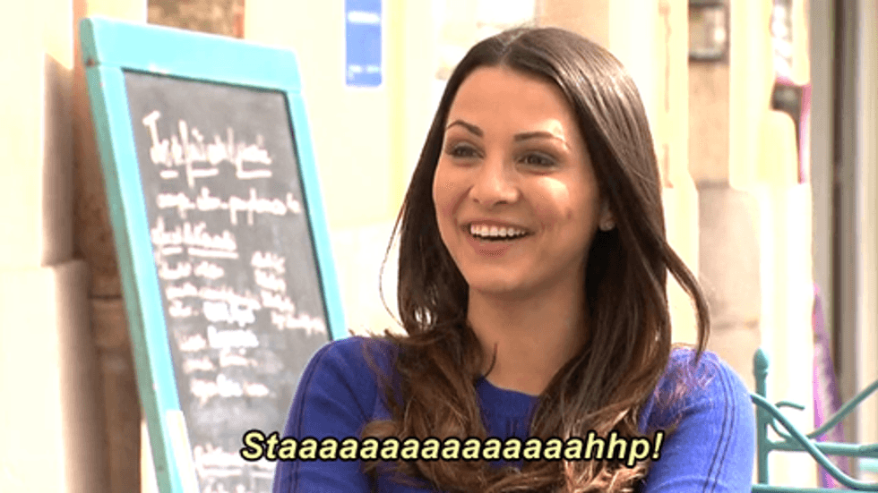 Why would I want to just make out with someone in front of a crappy band? I have no desire to jump off a bridge with a guy on our first date. Remember when Desiree and Brooks tried on wedding dresses and tuxes? That just seems awkward for everyone. Let’s make some tie-dye shirts or like play a very competitive game of Uno or something. And I don’t know what fancy dinner they’re planning on serving up, but we’re getting some Domino's pizza, and that’s that.