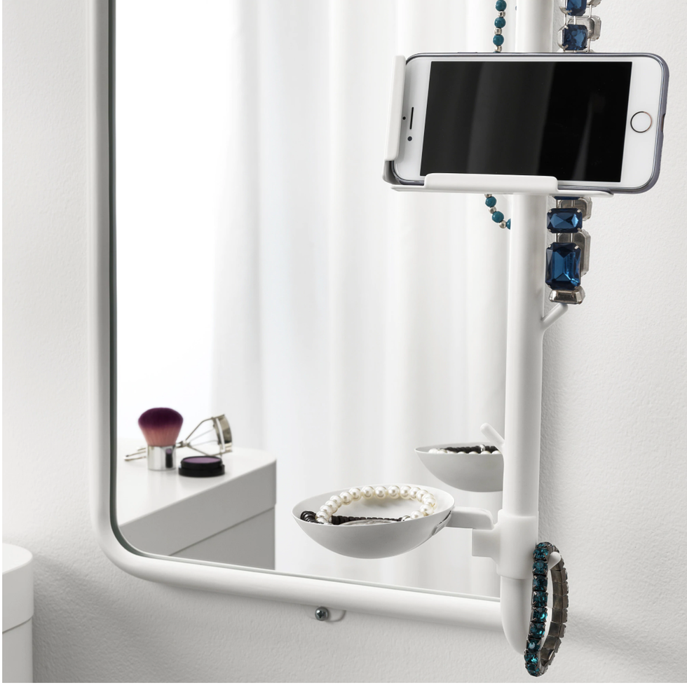 Wall Mirror With Jewelry And Phone Holder
