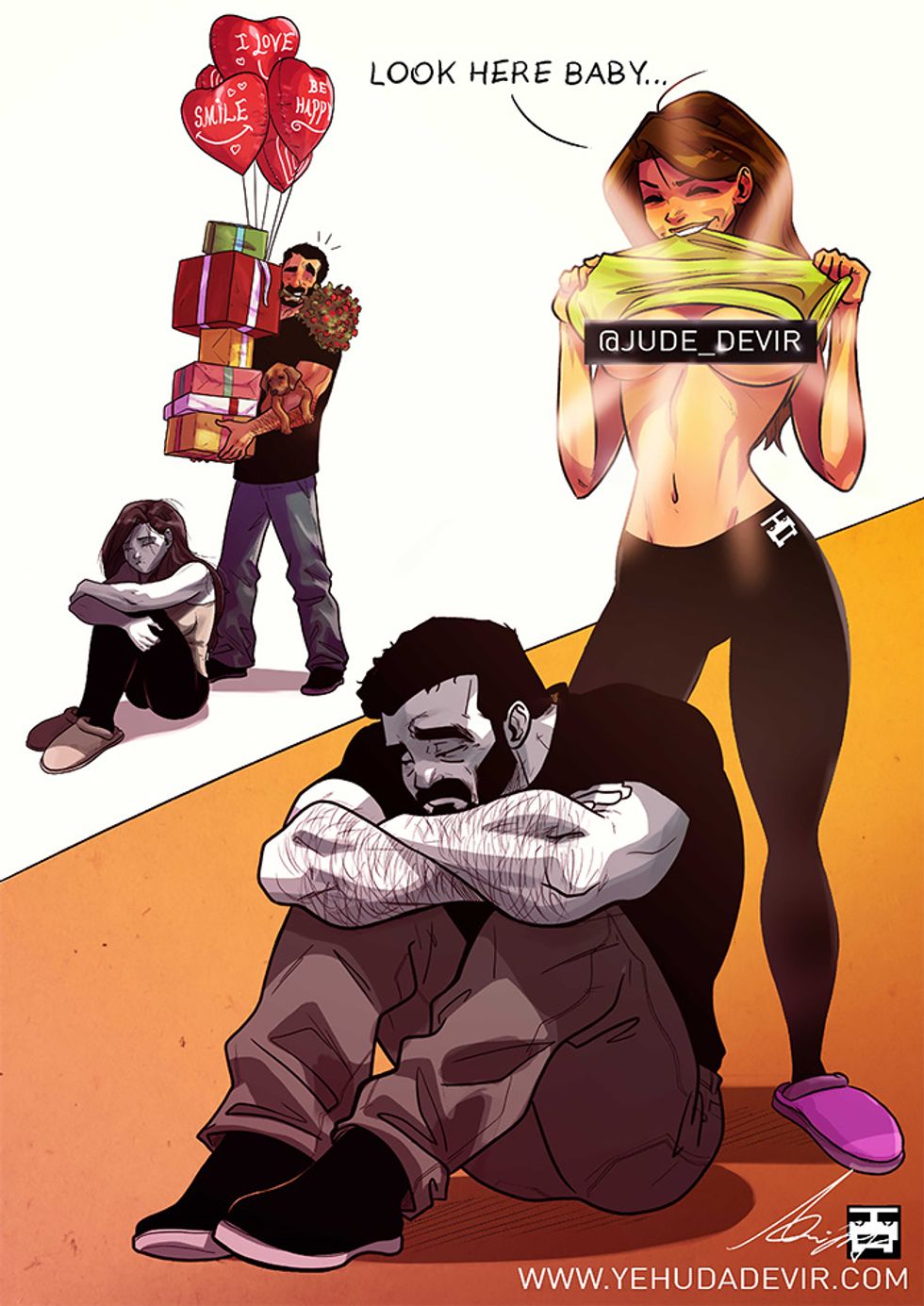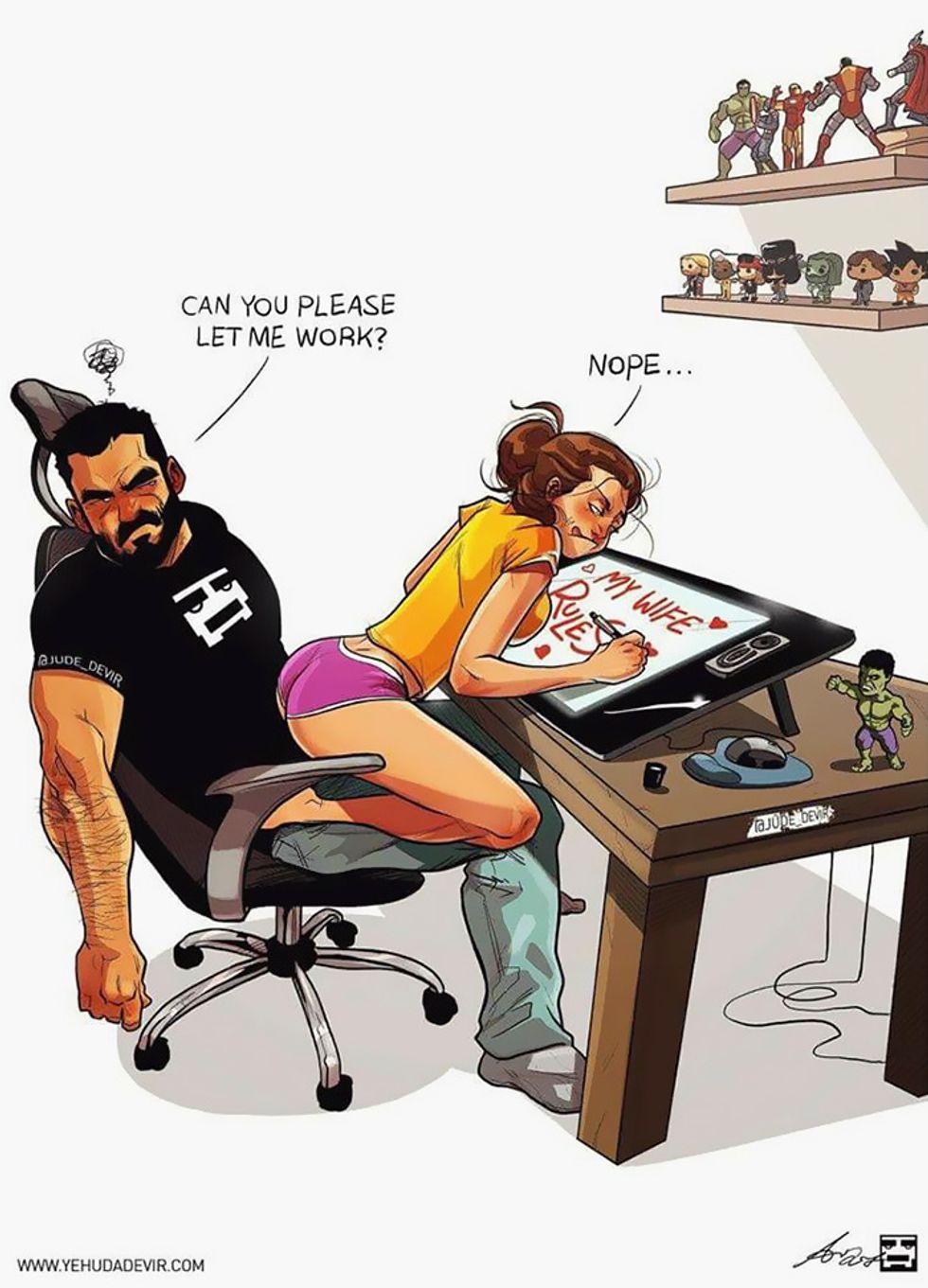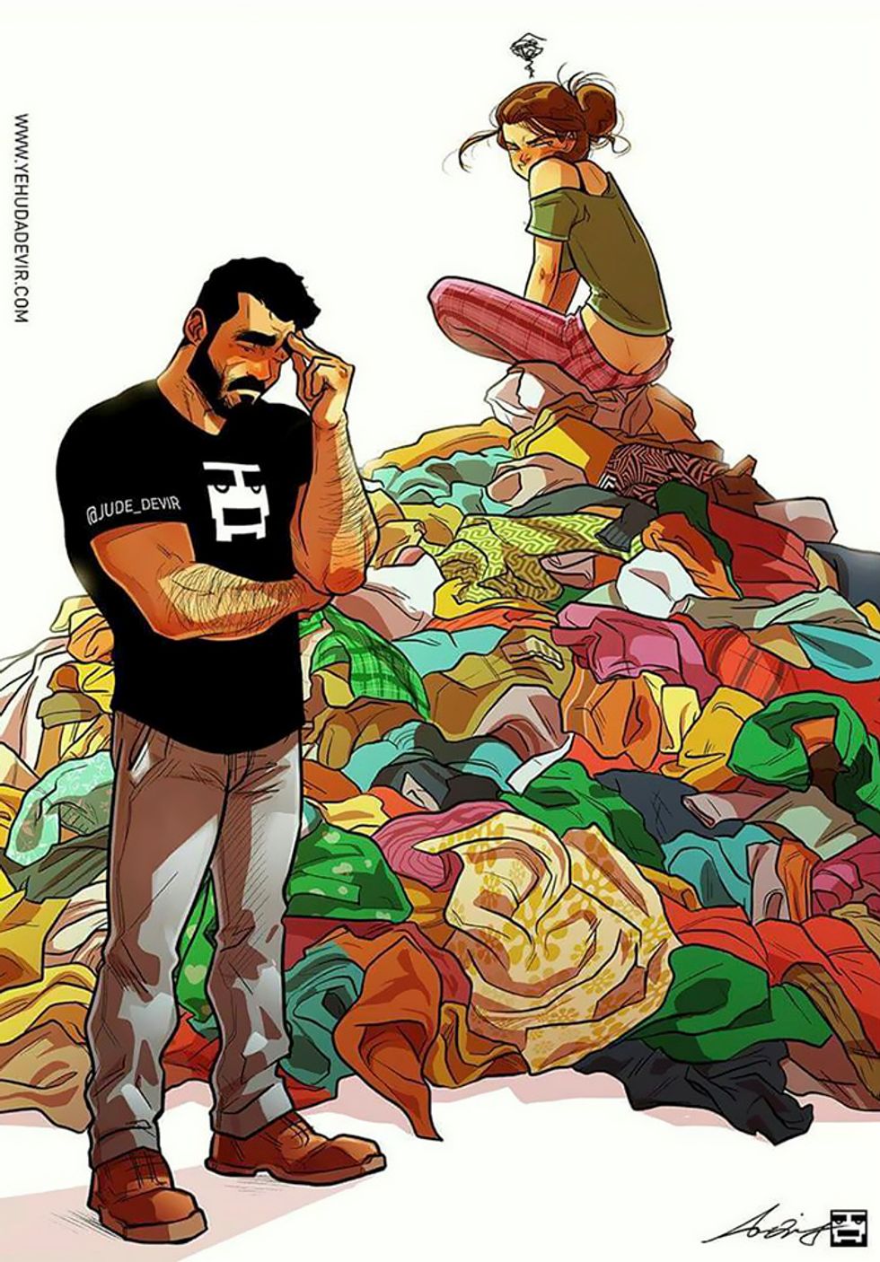Those comics are part of Yahuda's ongoing series "One of Those Days", which shows all those funny, cute and annoying little things that everybody in a relationship will understand. With 3m followers on Instagram, the artist conquers our hearts with those relatable illustrations about haircut catastrophes and birthday festivities, clothing problems and Game of Thrones binge watching. And I bet every girl will know exactly what #7 is about… Scroll down and see for yourself!