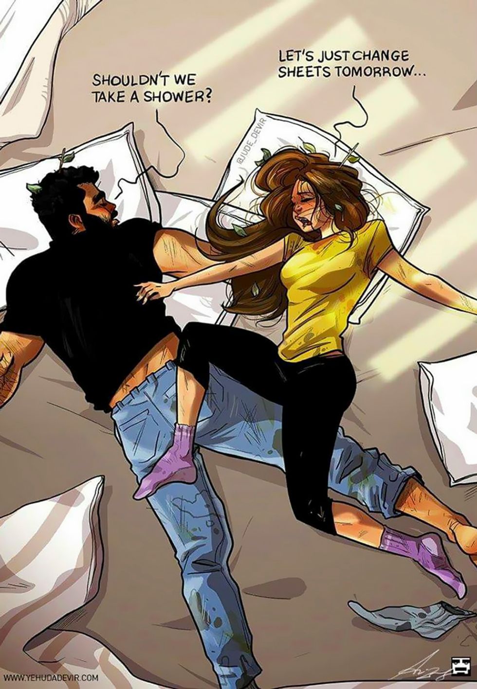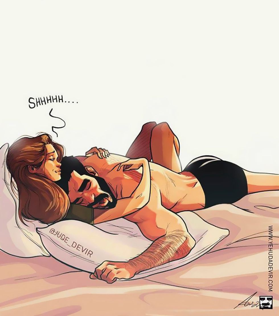 Last night I wandered all across Instagram and stumbled over this amazing artist. Yehuda Adi Devir is an illustrator, comic artist and character designer who creates gorgeous comics about his daily life and funny adventures with his wife, Maya. It's the kind of comics that make you smile and go "Awwww!" and I figured I simply have to show you some of my favorites.