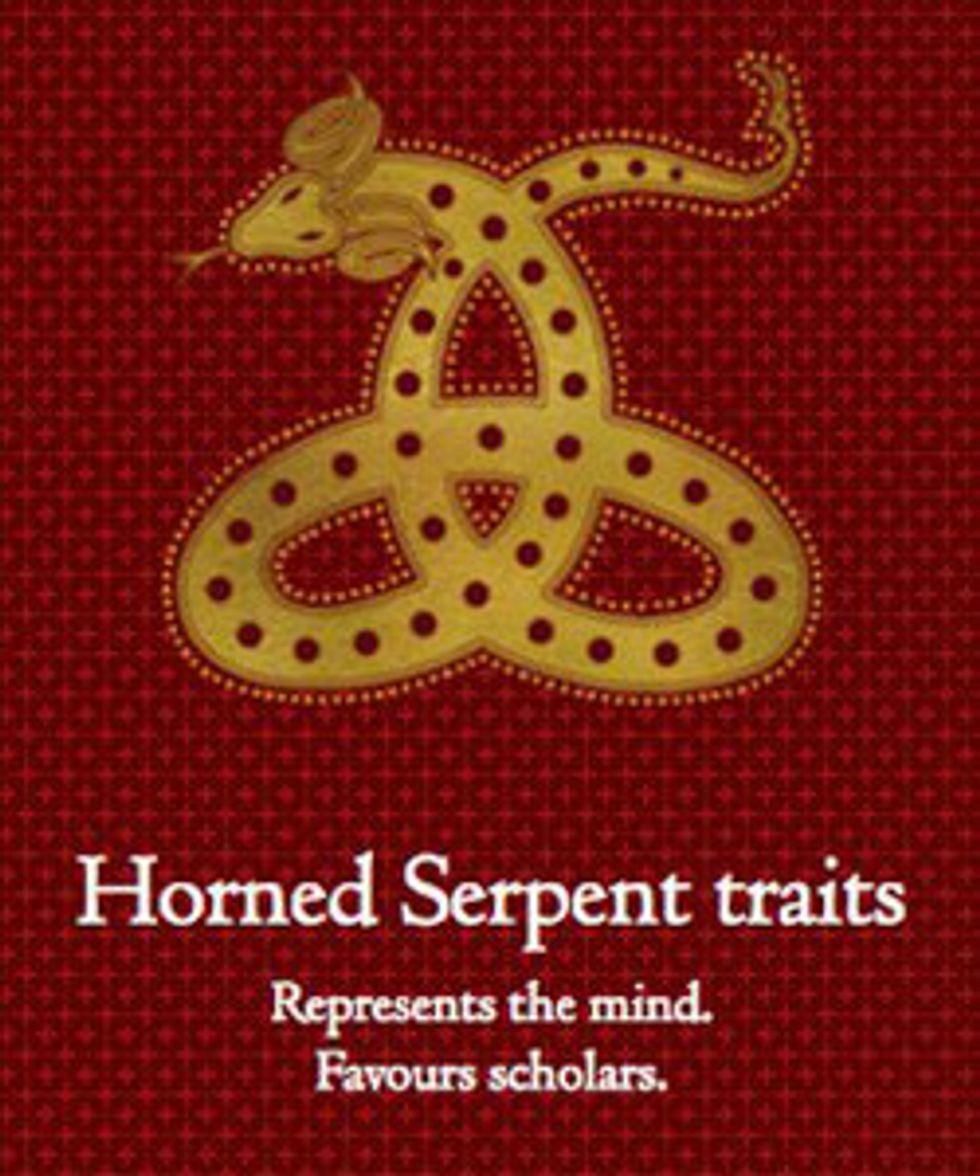 And the sorting process itself, though similar to the Sorting Hat at Hogwarts, was different. Unlike the Sorting Hat, students at Ilvermorny instead stand one at a time on a golden Gordian Knot, a symbol of Isolt's original home that the school is named after, in front of 4 wooden carvings of the creatures. When a house has chosen a student, the carving will react in some way. "If the Horned Serpent wants the student, the crystal set into its forehead will light up. If the Wampus wants the student, it roars. The Thunderbird signifies its approval by beating its wings, and the Pukwudgie will raise its arrow into the air."Students can be chosen by multiple houses, at which point they are allowed to pick the house they wish to join. Some students, although it is very rare, are chosen by all four houses.