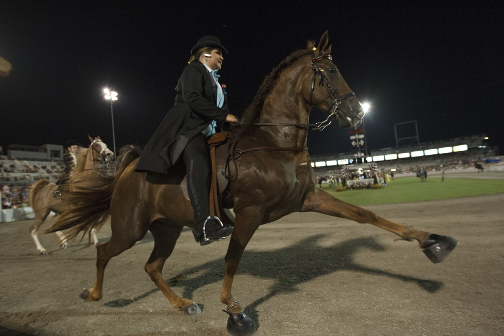 Tennessee walking horses are kept in stalls most of the time. This is horrible for horses, which enjoy and truly need to be turned out every day if possible. When they are being trained and showed, tall and heavy shoes are put on their hooves in order to weigh down their legs. Their legs are covered with painful chemicals in order to cause them pain. This is completely intentional on the part of the trainers. Every time the horses touch the ground with their front hooves, it is agonizing. This prevents the horses from touching the ground nearly as often and therefore extends their gait. This tactic is called soring.