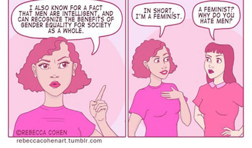 A man-hater. – I don’t hate men! In fact, I have many male friends and I date men. Just because I believe in the equality of genders does not automatically mean I hate men. I want people of all genders to be treated equally, not one above the other.
