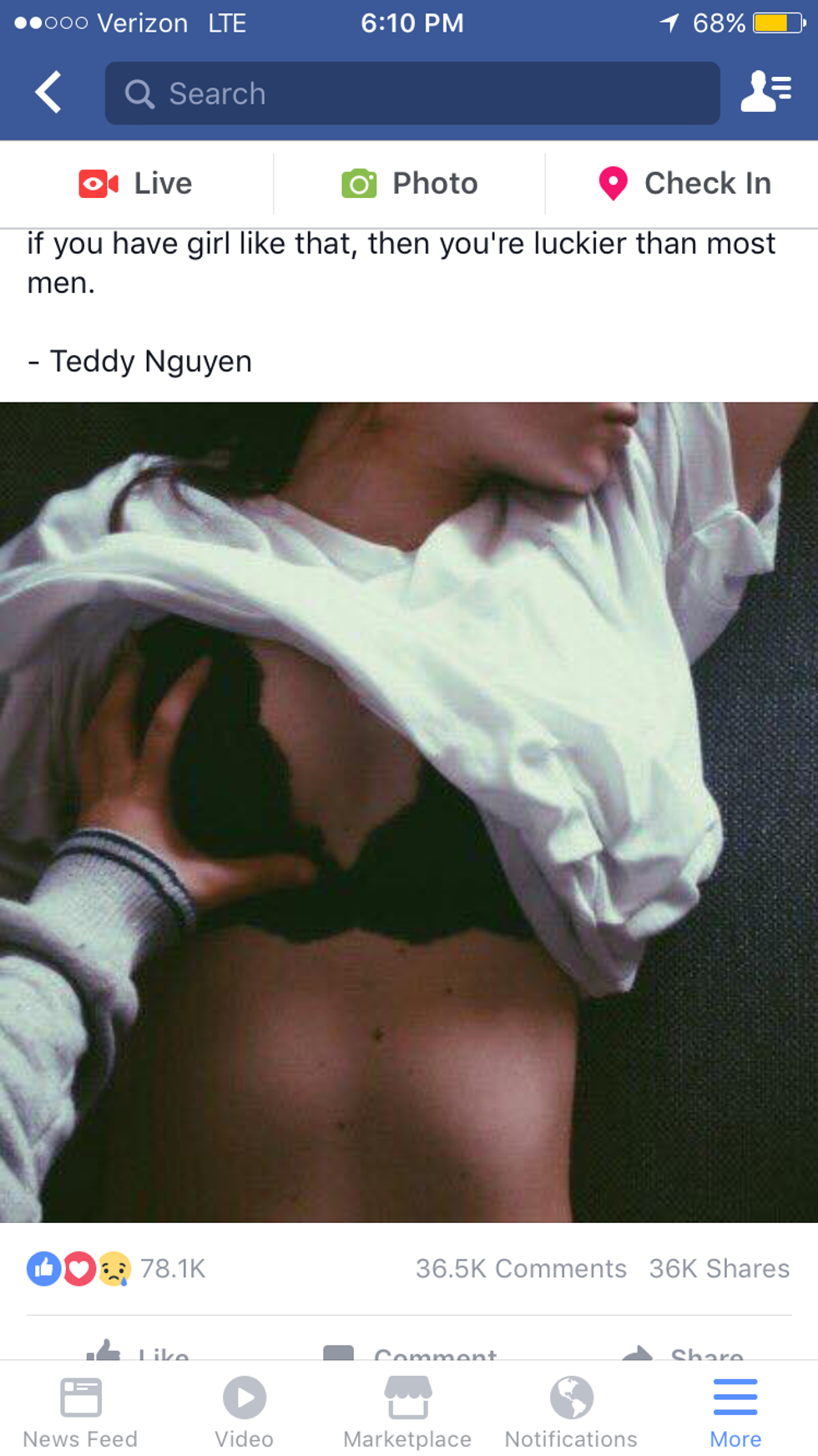 If you're not sold on the fact that this quote is absolute garbage, keep reading. The post refers to women as "damaged," it talks about how you need to be with the girl who hasn't been damaged by another man, who isn't broken, how you need to get to her first. It's as if those who are "damaged" aren't good enough; those who carry a little extra baggage just aren't worth it. If you've ever been hurt of screwed over by a man before, this post makes it seem like you should consider yourself "damaged goods" and commit to a life of celibacy because no man would ever want you. No one would ever want to start a life with that kind of woman, no one would want to marry that kind of woman and no one would ever want to bring children into the world with that kind of woman. Guess what Teddy... damaged and broken are not synonymous with unlovable.