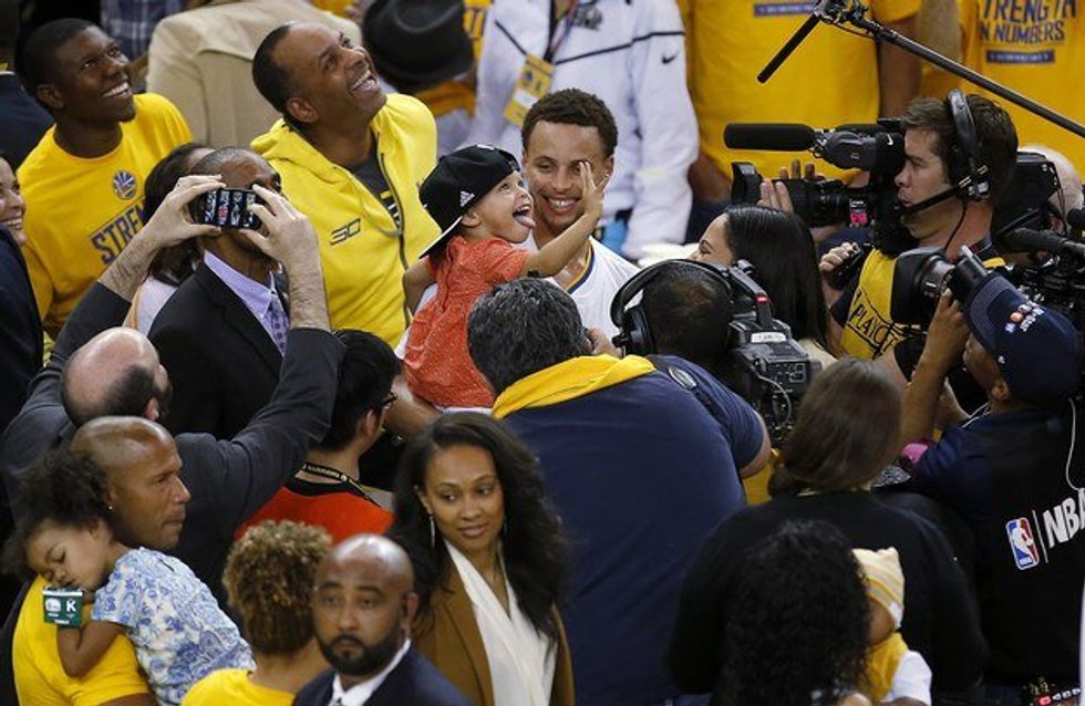 She lights up every room she walks, well, gets carried into. Never failing to make us, and her dad, giggle a little, she is why most of us (or all of us) watched the NBA finals/press conferences with Steph Curry...