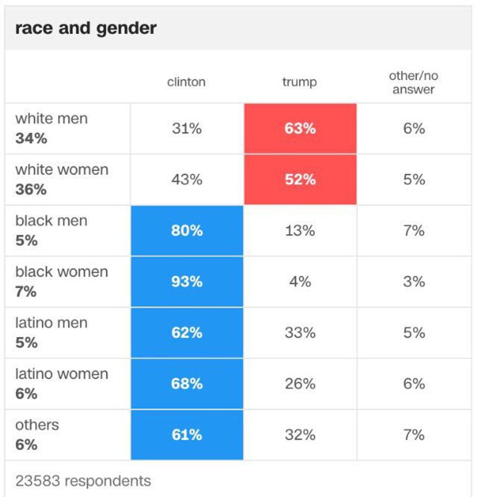 I am a white woman and I did not vote for Donald Trump. How could I? After he insulted my friends who are women; who are black, Muslim, gay, lesbian and Hispanic. How could I bring myself to respect and vote for a man who stands solely on hatred, bullying and terror?