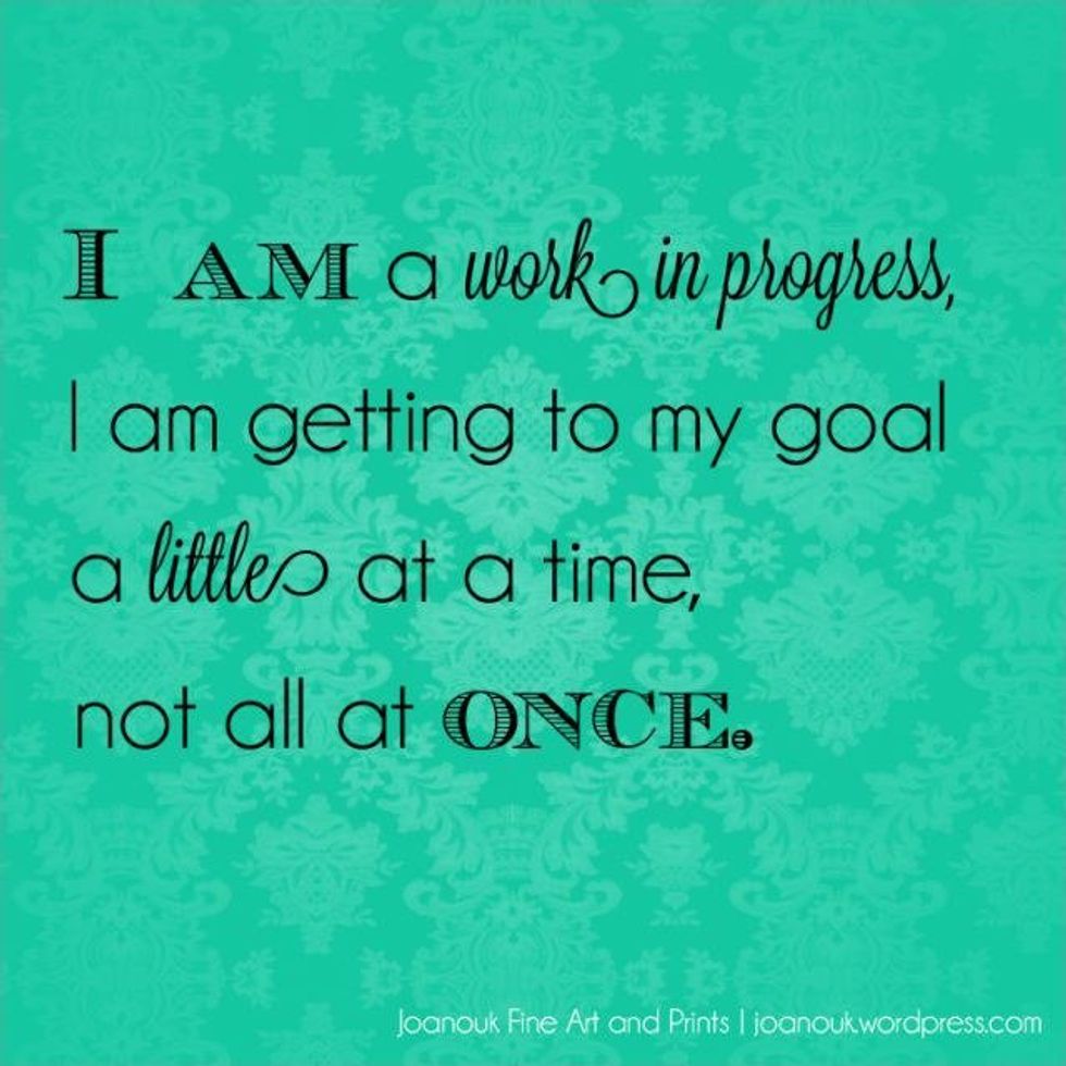 I will always be a work in progress. Progress means you're always moving forward even when you sometimes have some setbacks. Whether it is financial, spiritual, emotional, educational or anything else in your life you have to keep moving forward. Progress takes time and we don't always like it. Personally, I am I looking to progress my spiritual life, financial life, and relationships with others. There will always be mistakes in every aspect of my life. That sounds weird to say, but it will happen, I just have to prepare myself. Proper preparation prevents poor performance. I will always be a work in progress but don't worry, I'm in it to win it!