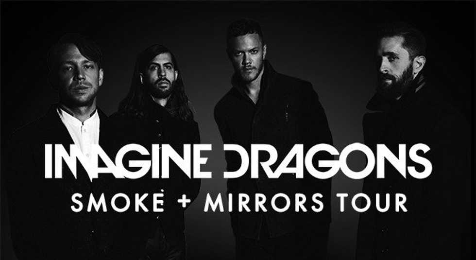 The stadium lights dimmed. Smoke rose behind the curtain, then four shadows appeared: Imagine Dragons's silhouette. They opened with "Shots," to uproarious applause.