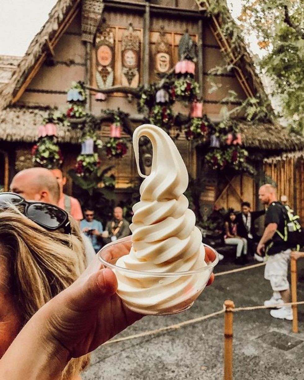 Dole Whip is honestly even better than Mickey ice cream bars in my opinion though! The traditional pineapple flavor is what I live for. It is always cold, fresh, and a little bit sweet with a custard-like texture. It is an unbelievably refreshing snack in the Florida humidity or the California heat!