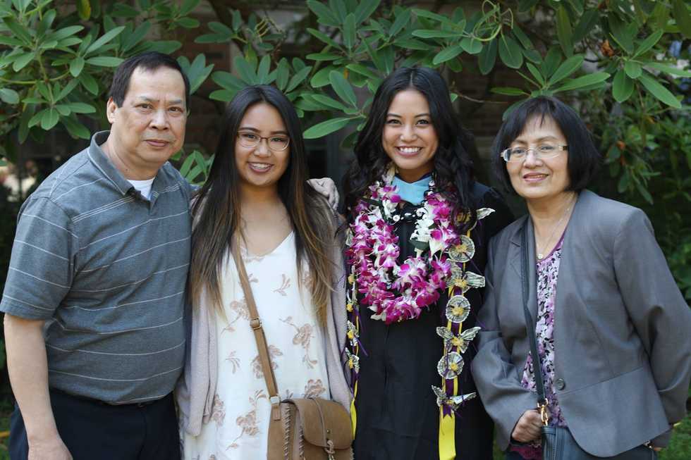 So I just want to say thank you to my parents for coming to America so I could have a brighter future. You both have done so many little things in my life that I never became aware of it until I grew old enough to understand. Thank you for dealing with my crybaby self when I was younger, and dealing with my angsty, “I-hate-the-world” phase when I was older. You were always patient with me, and I never took the time to realize just how much you have both sacrificed until I was older and out of the house. I also want to say thank you for teaching me the things I would have learned back in the Philippines as well. My favorite foods will always be lumpia and adobo, and I will never forget the first time I learned a traditional dance. Thank you for not forgetting where you came from, and teaching your daughter to have pride in where her blood runs. Thank you for everything you have done; you both did so much more than I ever deserved, and you did it all in love.