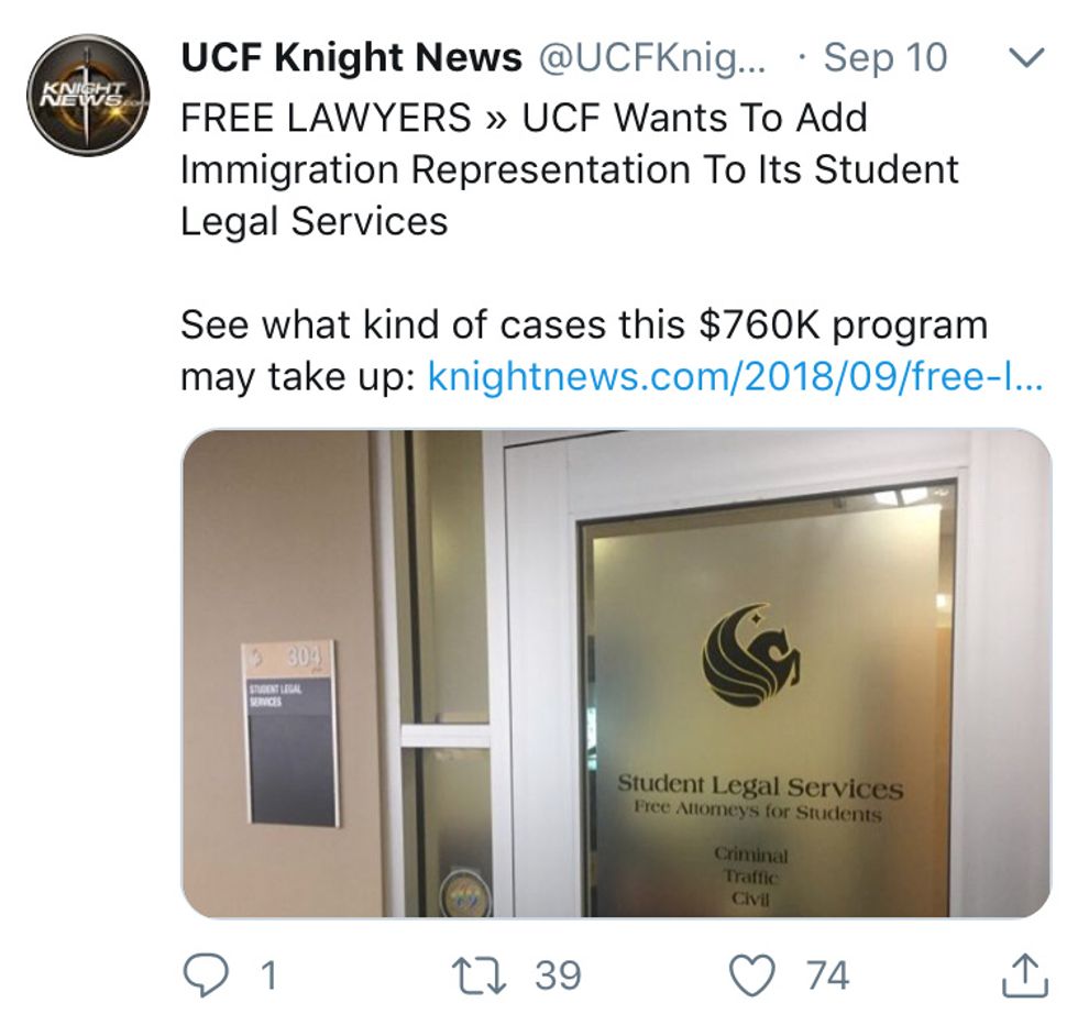 Knight News reported that The University of Central Florida wants to add Immigration Representation to its student's legal services. This is big for the university considering how diverse its population is and how many DACA students attend.