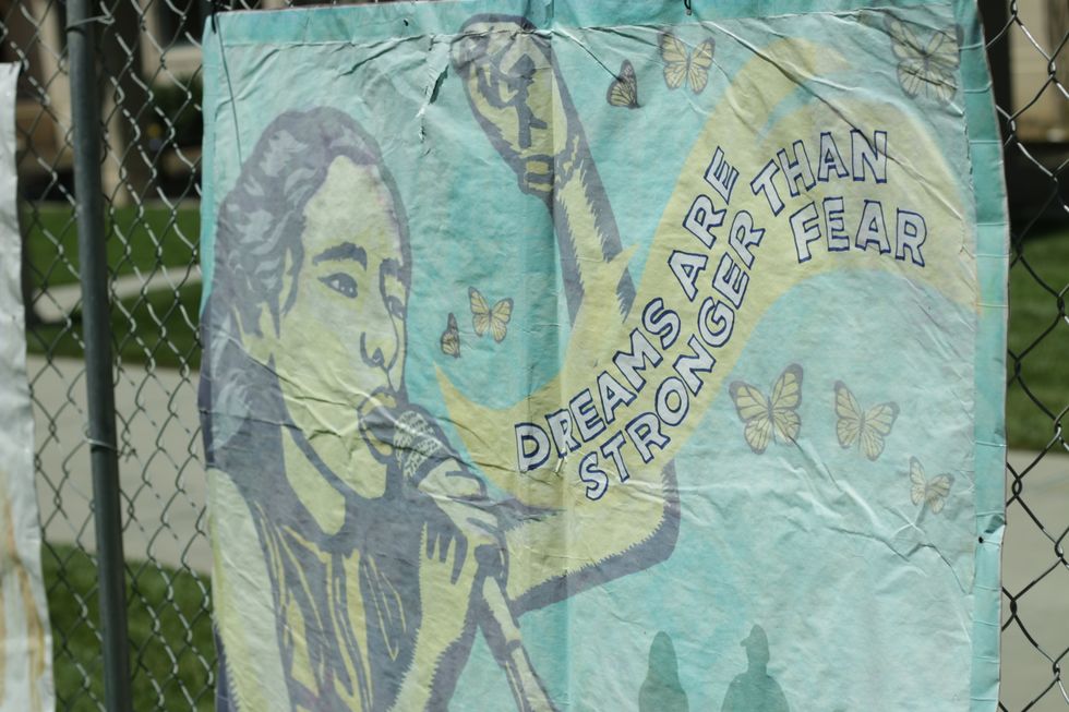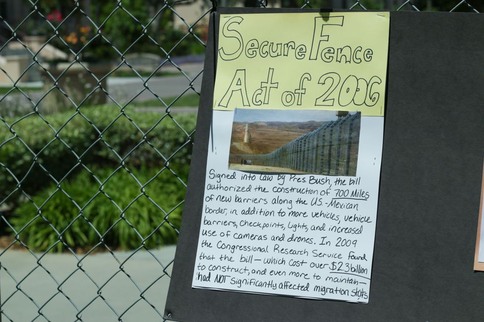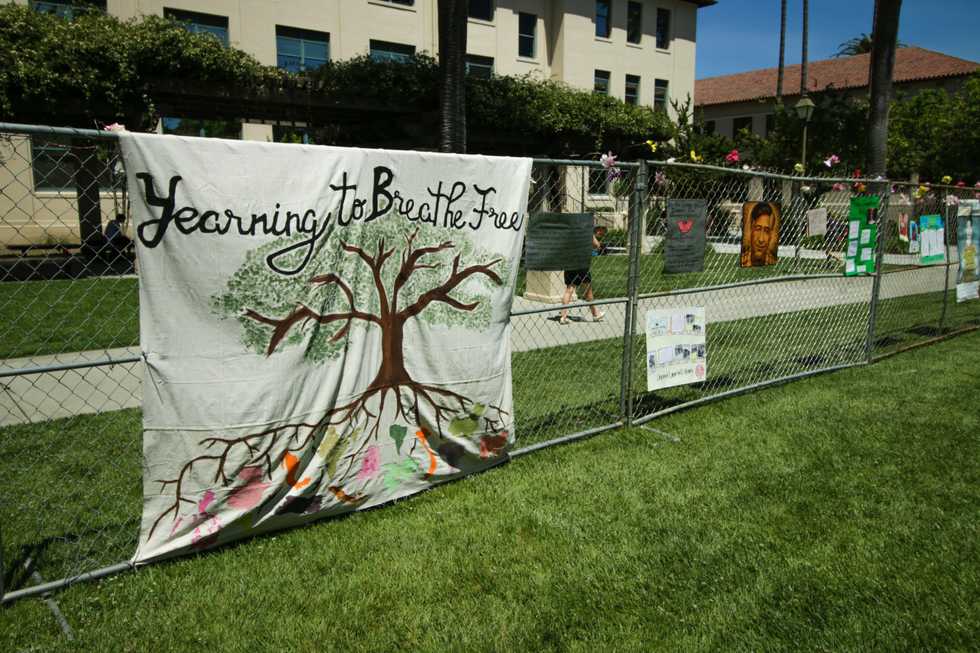 International Workers’ Day is observed on May 1, a day of celebration that is often called May Day. This week marks the sixth annual Immigration Week at Santa Clara University, a joint venture from six organizations on campus to help spread awareness and to encourage reflection on immigration. A prominent feature of this week is the mock border fence that runs between Kenna Hall and Benson Memorial Center and creates an obstruction in a student’s daily walk to class. Here are a few pictures I took as I walked along the fence: