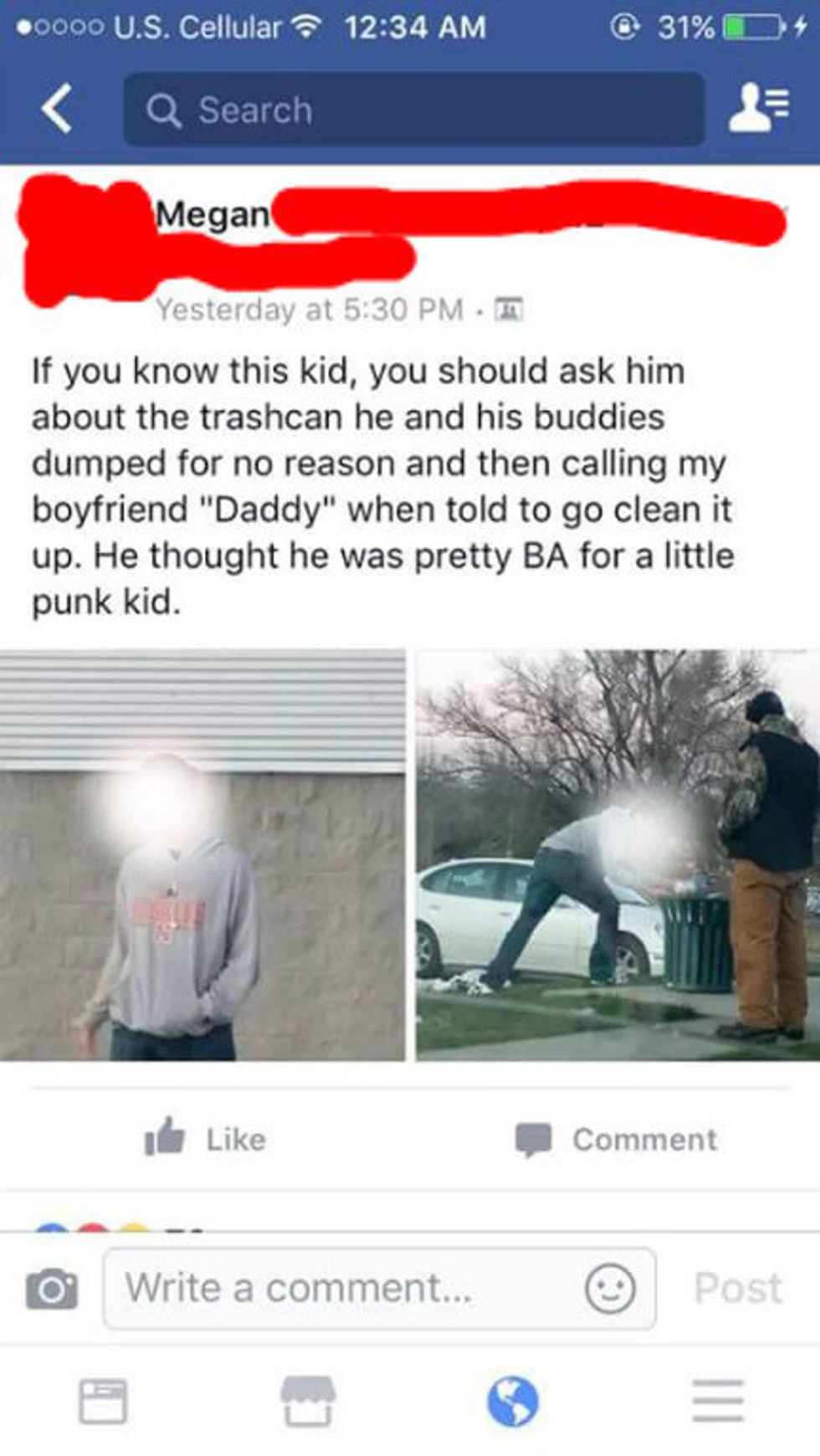 I am in no way trying to say what this boy did was okay, because it wasn't. But I do want to point out that at least the boy went back and picked it up. I know of plenty of people who probably would have looked at Megan's boyfriend and said something much ruder than calling him "daddy".
