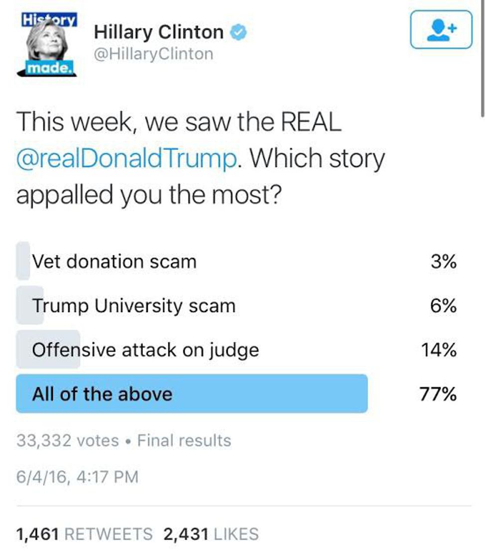 Clearly, Clinton has been thinking the same thing. President Obama and Sen. Sanders publicly threw their support to her (see here and here), but even after that, she's still taken to Twitter as one of her main platforms in trying to gain the youth vote. But despite the effort, perhaps she's going about it the wrong way.