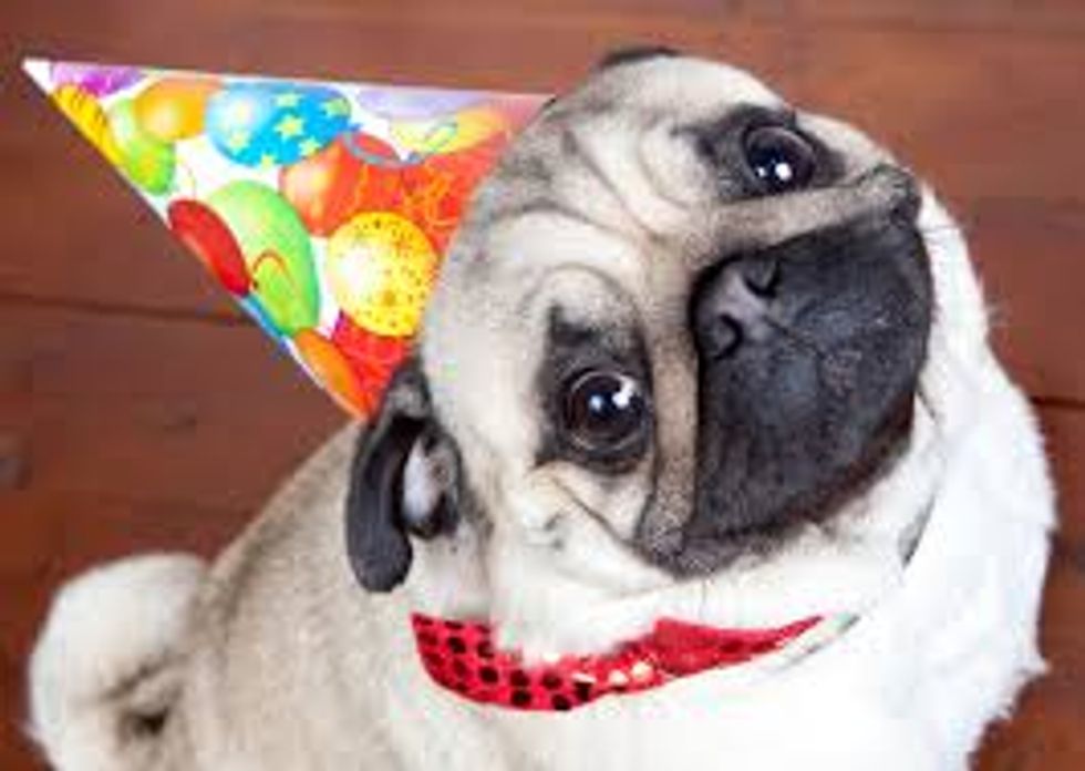 Animals in party hats are the cutest things in the world. Literally. It doesn't get any cuter than a chubby pug wearing a cone party hat.