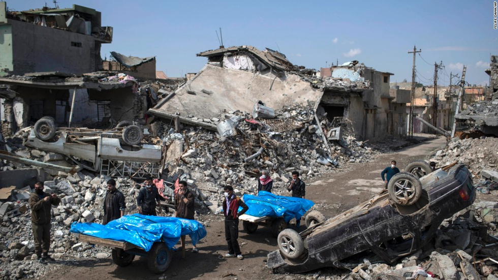 Aftermath of U.S. airstrike in Mosul, Iraq that killed over 100 civilians.