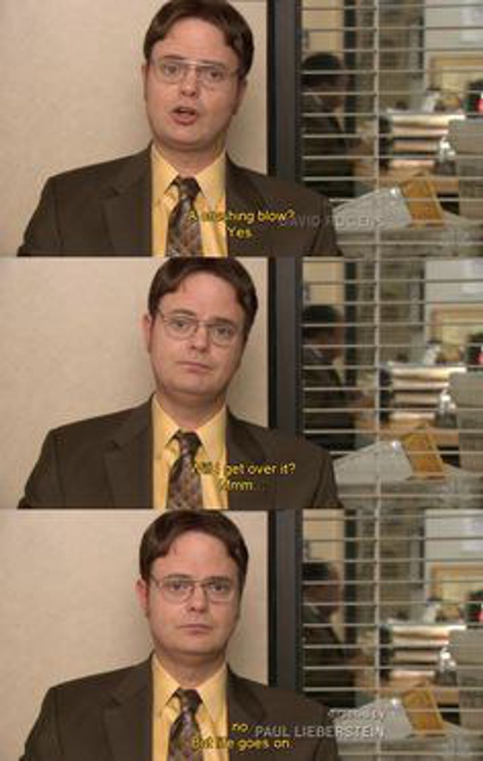 As one of the "toughest" characters on the show, Dwight is right. Sometimes shit happens. And even though we may try to fix it, sometimes we just have to accept that it happened. Tell ourselves, "It is what it is," and carry on with our lives.