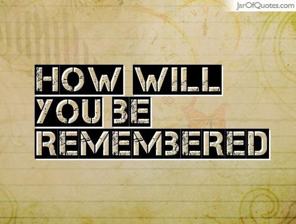 OK, I'm not dead but I've recently been thinking about my impact on this world. What would I leave behind when I go? What would people say about me when looking back on the person that I was? I may never know, but I know what I want them to say and I know what kind of impression that I want to leave on the world.