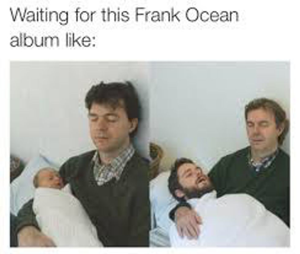 Although I'm immensely grateful for the new music, it's bittersweet to me because it's the end of a meme. Normally, memes fade slowly away after they become annoying, but this one died suddenly, without giving us a chance to truly mourn. I, for one, am going to kind of miss them. RIP Frank Ocean memes, you had a good long run, but your time has come to an end.