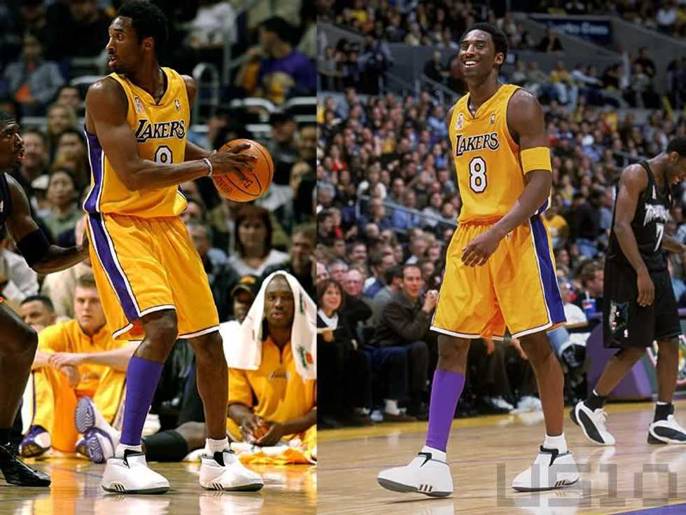 2002 marked Kobe's best year for footwear by far, as well as earning his third straight NBA championship. During the 2001-2002 season, Adidas released his second signature sneaker and follow up of the Kobe One, the Kobe Two. The sneaker's futuristic design was accomplished by originally taking inspiration from an Audi roadster, then adding an extra panel to cover the laces.
