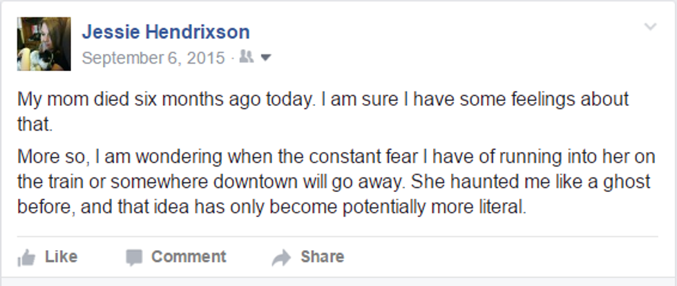 The day I realized she was an addict was the day she died. When shooting up seemed worth it when she was on a combination of prescription heart medications. When her own health didn't take precedence, and she needed that high enough to die for it.
