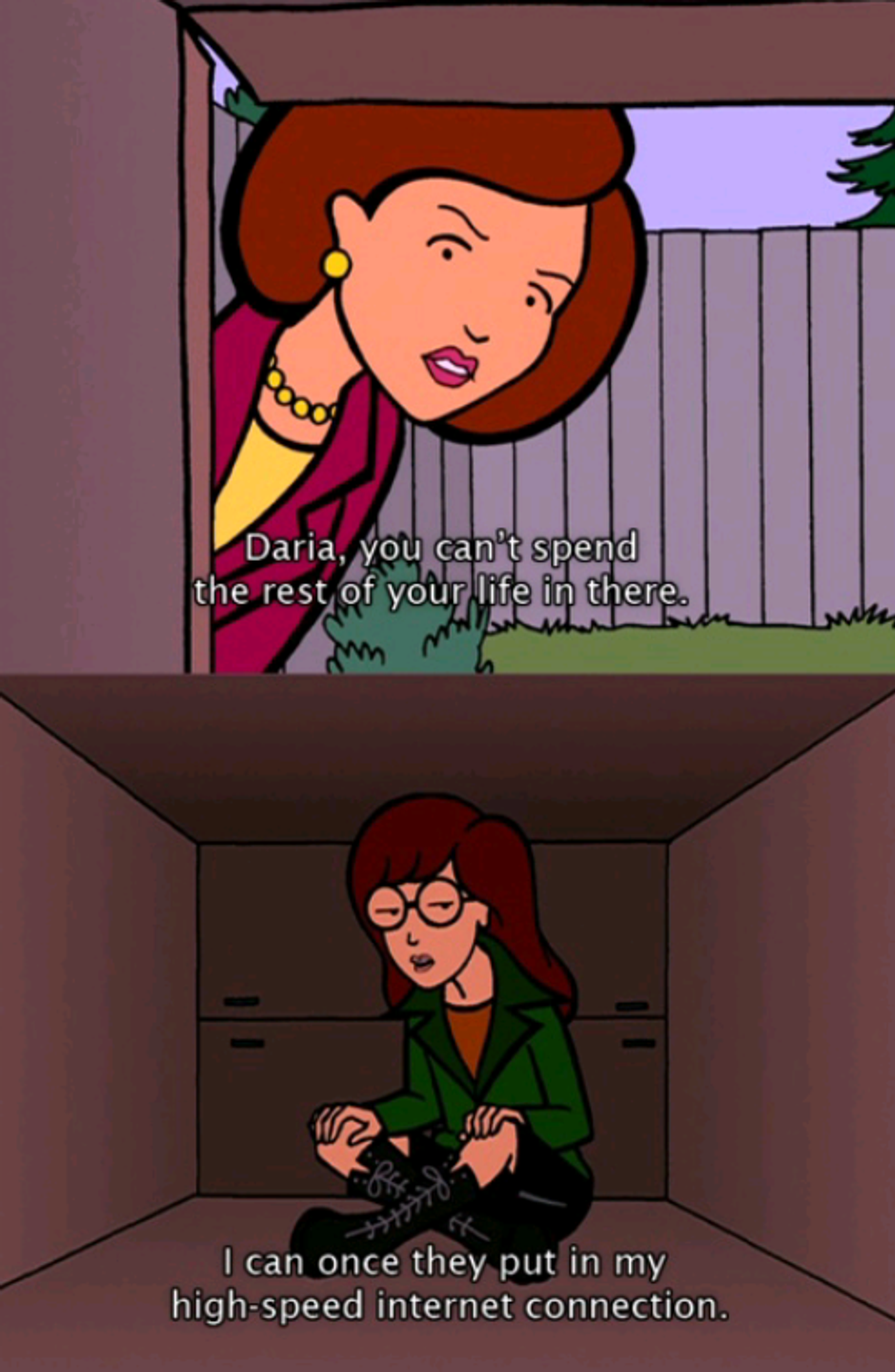 I watched the series in its entirety during my senior year of high school after a box set was released. With the perspective that comes from being 17 and unsure of what to do with my life, I found that the show meant even more to me than it did as a child. Daria was a girl who was covering extreme anxiety with a monotone voice and sarcastic quips. She both hated the system that churned out the adults in her life and understood the fact that she would probably end up exactly like them.