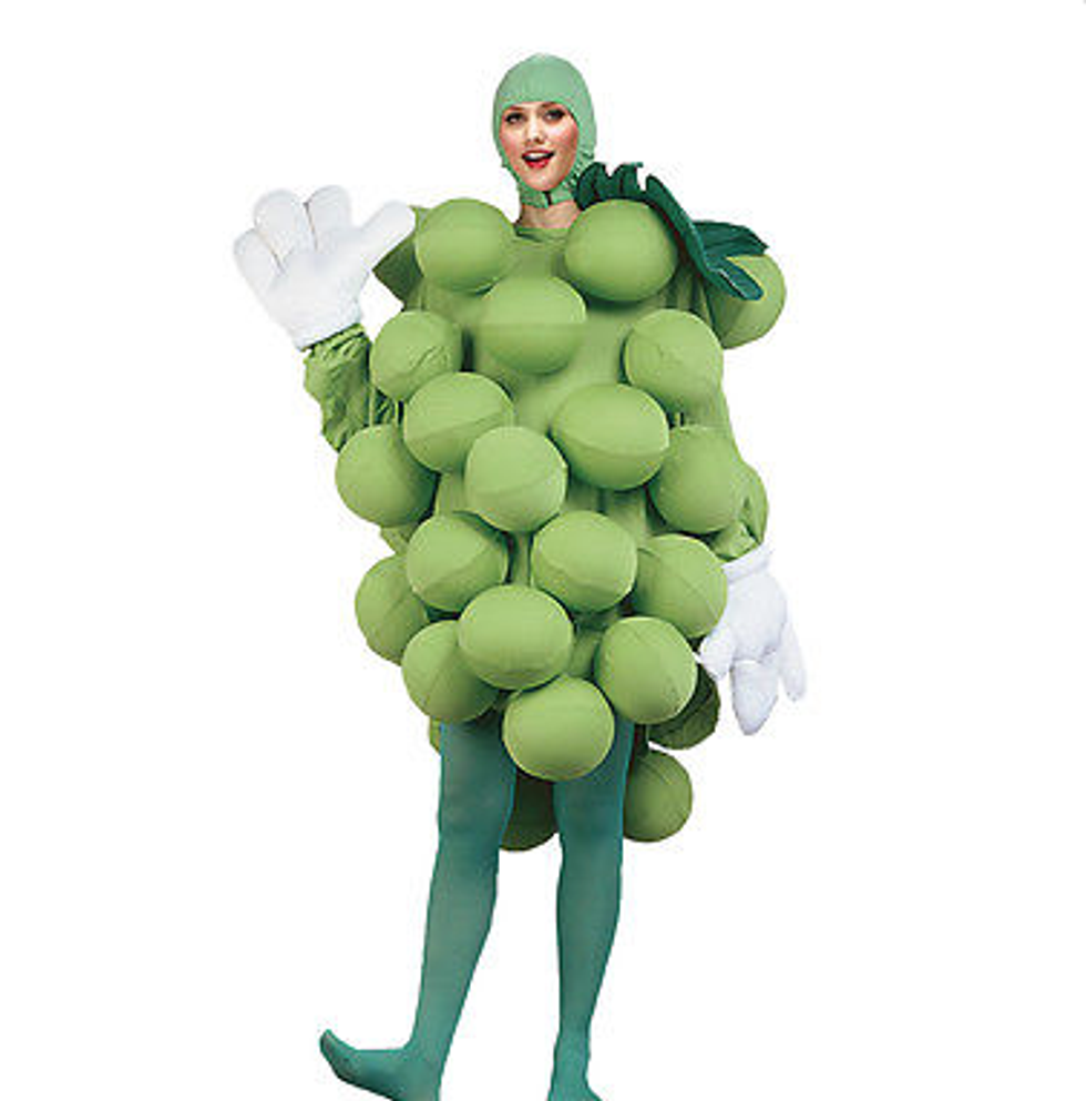This is a great costume if you ignore the fact that grapes actually don't have hands, and the hands on this costume are quite large. But other than that - A+ for effort.
