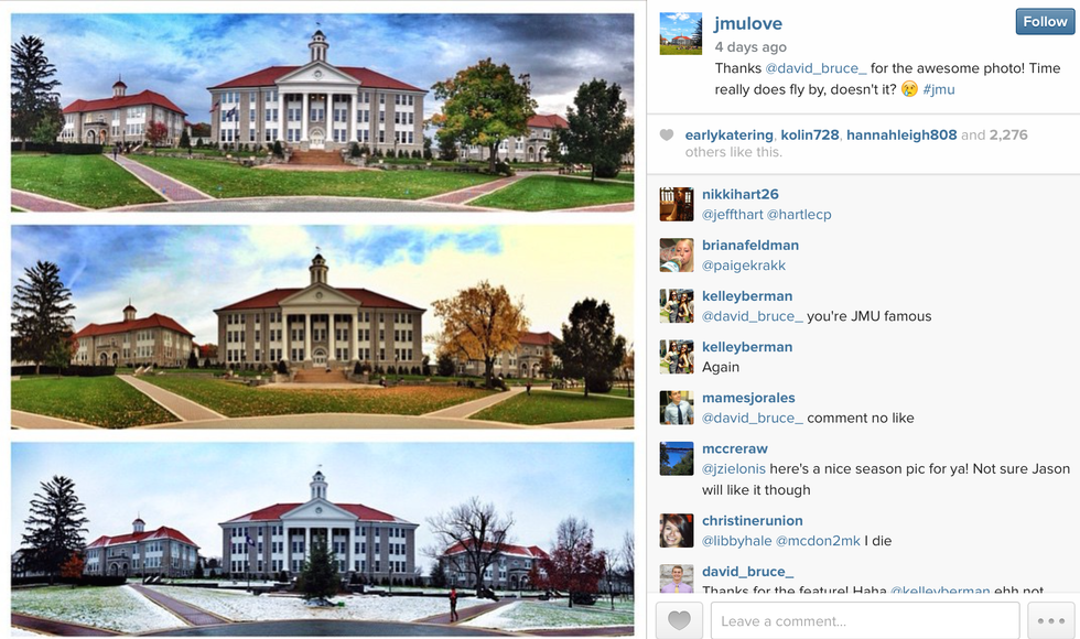 Students love JMU so much that there is even an Instagram account to display our love! Check it out to see beautiful photos taken by JMU students.