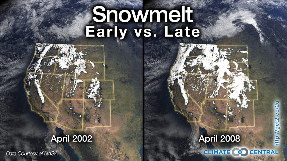 Climate Change is not the eradication of winter, it is the lengthening of the warmer seasons. "Climate warming can reduce snowfall, and cause earlier spring melts and shorter snow cover seasons. For instance, warmer air in Alaska has caused the snow to melt earlier each spring, lengthening the snow-free summer season." If there is less snow fall overall, and longer snowmelt periods the amount of snow cover will decrease overtime. It is predicted to have drastic declines over Europe and Asia.