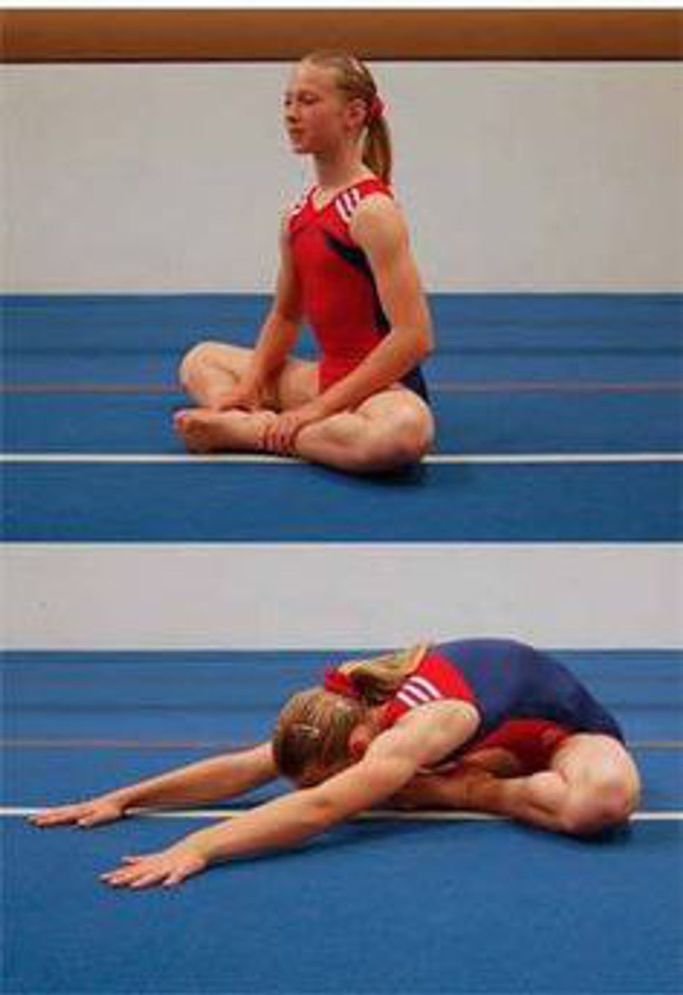 Second is the butterfly. This can be done sitting on your bum with your knees once again making a diamond shape. You can gently pressed down on your knees and/or stretch forward, aiming to get the belly button towards the floor. A friend can help you as well, gently pressing down for you. This can also be done laying on your back, similar to a frog. Knees can be bent into a diamond, or a demi plie. Very gently, a friend can press down on the thighs right above the knee.